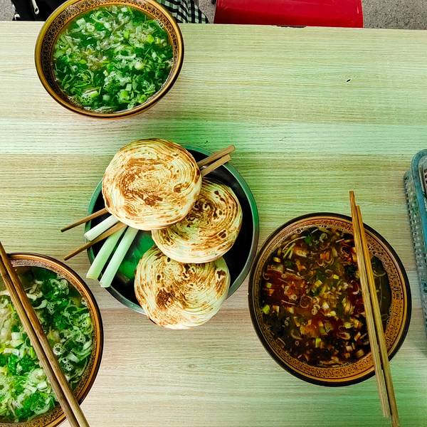 中午来到解州关帝庙。在关帝庙停车场旁边,就有一家西管羊肉泡餐馆,午餐就在这里了。解州羊肉泡是运城地区最有特色的美食,羊汤是解州羊肉泡的关键,全羊进锅,头蹄下水羊骨羊肉熬制的羊汤味道醇厚。一碗羊汤配...