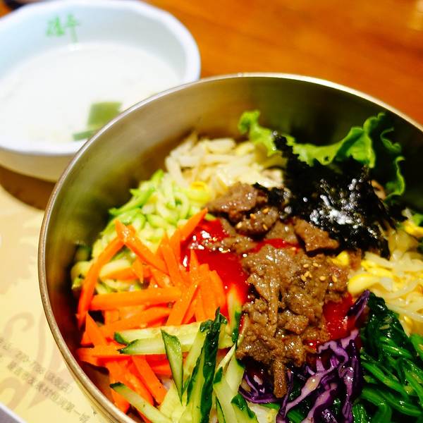 回酒店收拾了下,就和小伙伴们一起出门啦。今天的上午饭是全州拌饭,很多家分店,随便找了离得最近的一家,就在水上市场旁边。