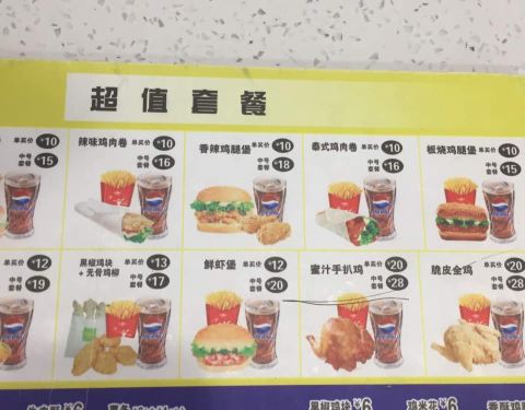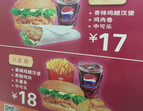 香辣鸡腿堡,香酥鸡腿加可乐,超级赞。一个人吃的饱饱滴