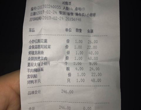 菜单如下。四个人用餐,服务员并没有就分量对点菜作出具体明确指导,导致浪费。后来加了四罐金星啤酒,居然多了三十二块钱,合一瓶八块,好贵啊…支付宝支付不是说好的九五折加随机立减的吗?怎么没见啊???!!!菜单如下。四个人用餐,服务员并没有就分量对点菜作出具体明确指导,导致浪费。后来加了四罐金星啤酒,居然多了三十二块钱,合一瓶八块,好贵啊…支付宝支付不是说好的九五折加随机立减的吗?怎么没见啊???!!!