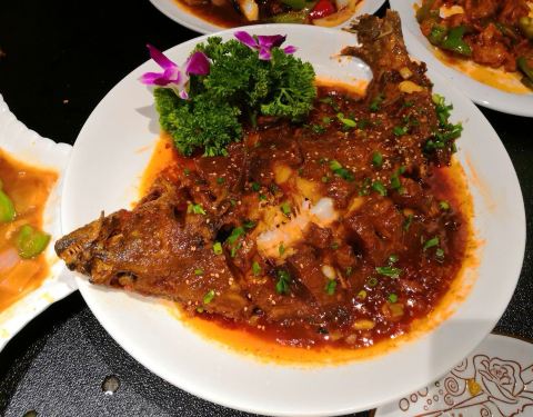 饭店服务不错,上菜的时候总会报菜名,菜品味道很好,强烈推荐地锅馍!酱很好吃,孜然羊肉,麻婆豆腐,香菇油菜,酸辣土豆丝,大鲤鱼我的最爱,不长肉,还有凉拌木耳,米酒汤圆,西湖牛肉羹,梅菜扣肉儿子很喜欢,一下吃了两个,肉夹馍啊,炸虾锅巴,还有饭后甜点,紫薯味很甜。