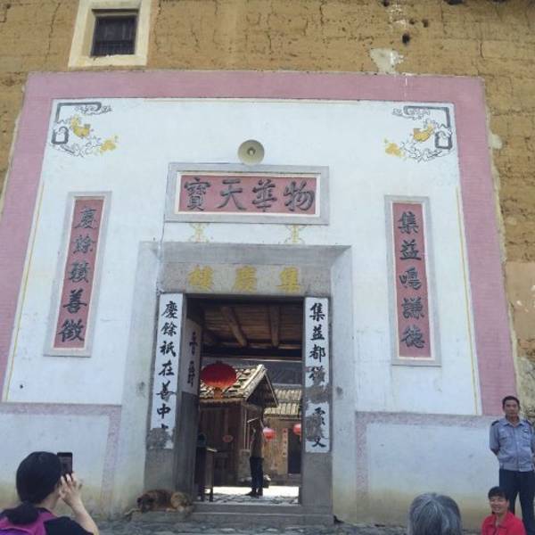 进入初溪村,要先过一条河,河水清澈。沿着台阶拾级而上,就到了集庆楼。集庆楼建于1419年,是永定县目前历史最悠久的圆形土楼。集庆楼内已无人居住,绕楼一圈,每个房间都是陈列室。集庆楼内有72道楼梯,造型奇特为土楼之最。电视剧《下南洋》的主要取景地就是在这个景区。这座土楼可以登楼参观,楼上的房间大都是空的,木地板踩上去吱吱作响。