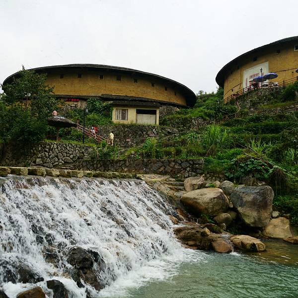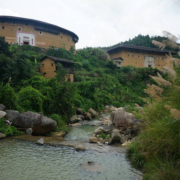 土楼群依山傍水,时间关系,我们参观了其中的集庆楼,这是永定现存最古老(建于1...永定的土楼群很多,选择了人少的初溪土楼群。