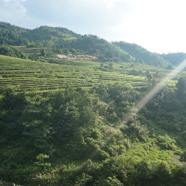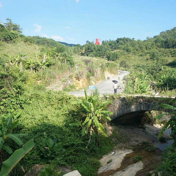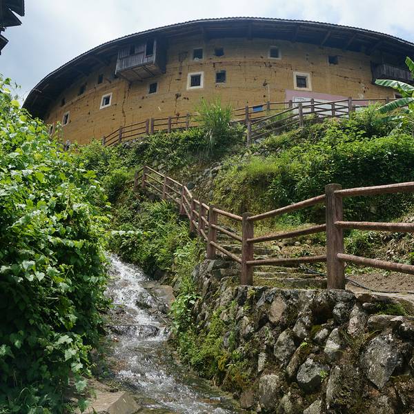 进入初溪村,要先过一条河,河水清澈...初溪土楼群位于永定县下洋镇,形成于明代初至现代,近百座土楼依山就势、错落有致、背靠千亩梯田。该土楼群是人与自然完美结合、和谐相处的典范,被称为最令人震撼的土楼群。