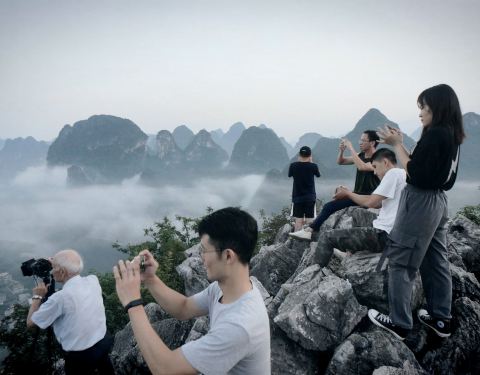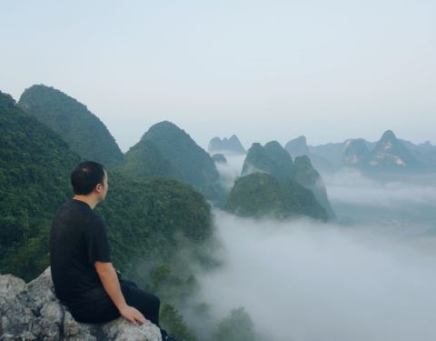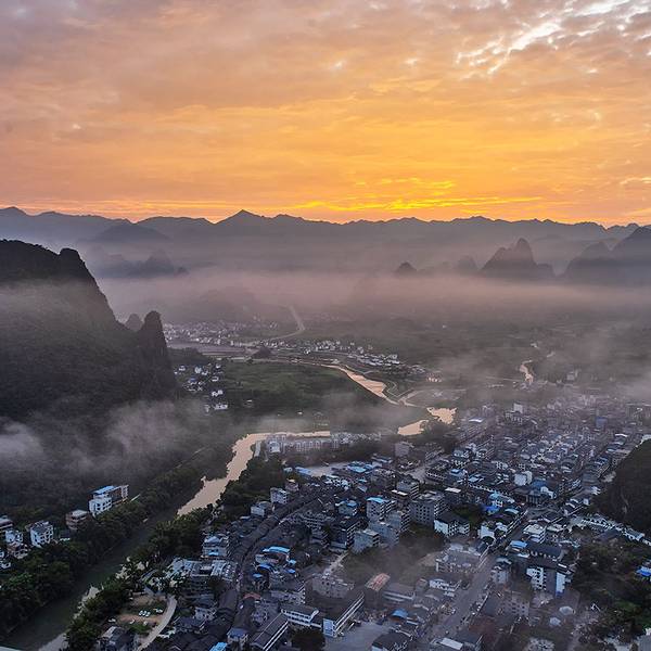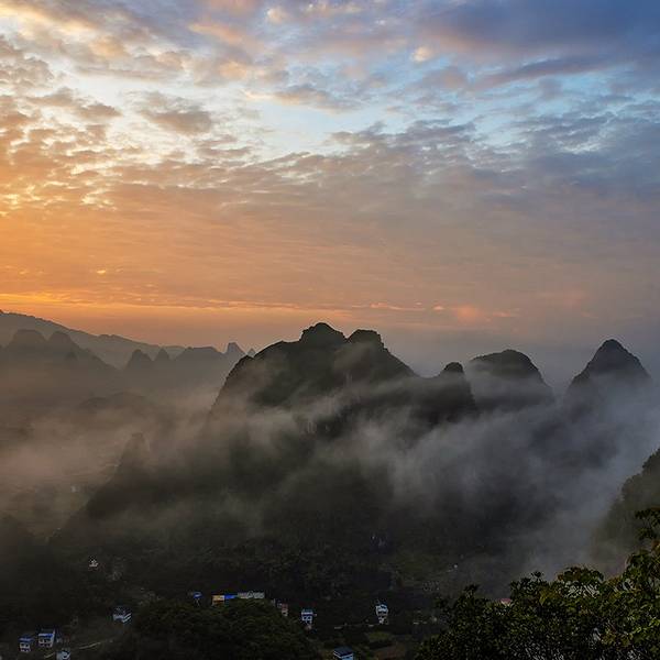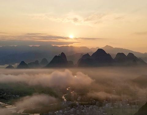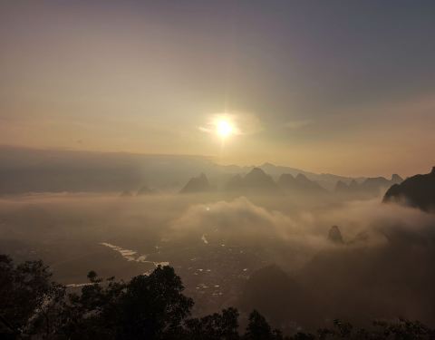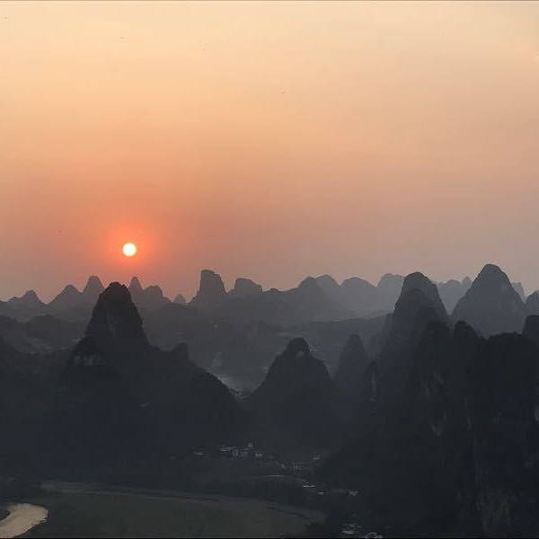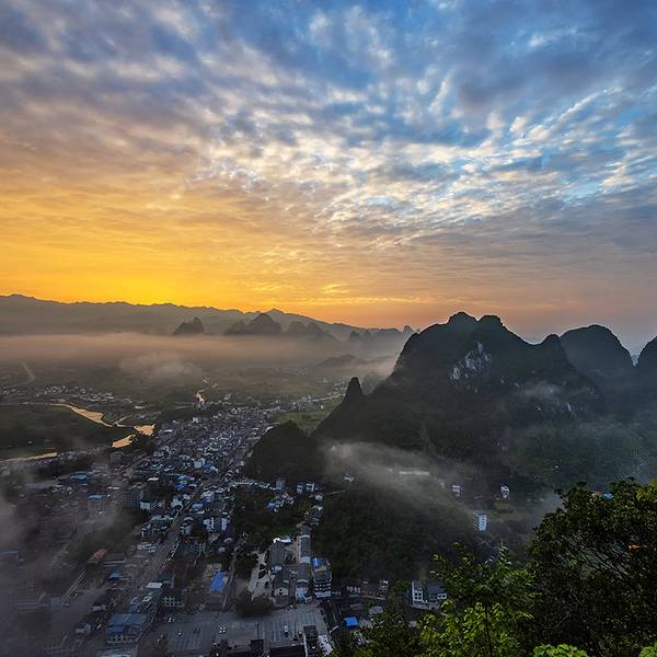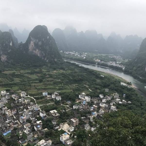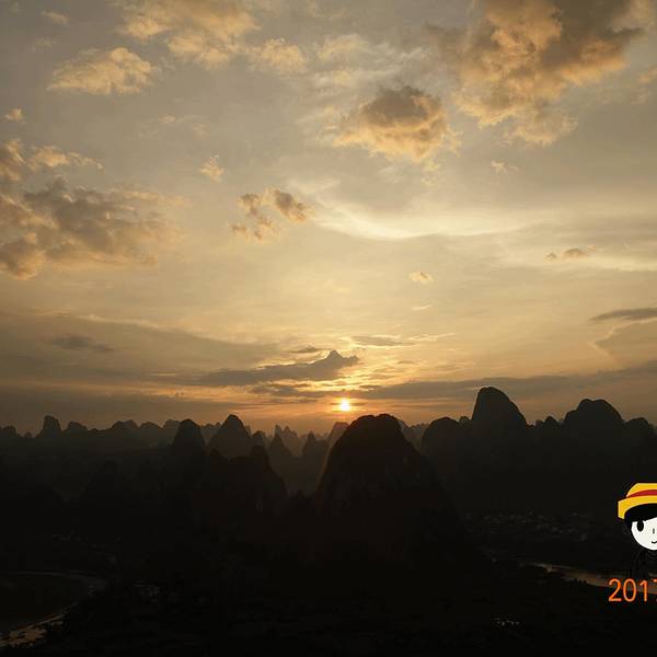 天气不算太好,早上云层有点厚,日出并没有想像中惊艳,好在还是邂逅了满天的朝霞。关于老寨山有个小故事这天晚上在兴坪过夜,选择了古镇上的民宿,离老寨山很近,为的就是第二天早上方便起来拍日出。关于老寨山有个小故事。说是以前有个日本人到阳朔旅行,他爬上老寨山后发现这里可以看到更多的阳朔美景。但是那时侯...这天晚上在兴坪过夜,选择了古镇上的民宿,离老寨山很近,为的就是第二天早上方便起来拍日出。关于老寨山有个小故事。说是以前有个日本人到阳朔旅行,他爬上老寨山后发现这里可以看到更多的阳朔美景。但是那时侯上老寨山基本没有路,于是这个日本友人自己出钱给老寨山修葺了一条上山的路,方便后来的游客。而他,也留在老寨山脚下,开了家客栈,做了中国女婿。老寨山海拔不过300余米,不算高,但爬起来比想像中要稍困难,路颇为陡峭,时宽时窄的,黑灯瞎火时,还是要特别注意下安全。早起,借着手电筒的亮光上山,等太阳。天气不算太好,早上云层有点厚,日出并没有想像中惊艳,好在还是邂逅了满天的朝霞。必须得说,老寨山山顶实实在在是个赏景的好去处。只需一眼,就能将整个兴坪古镇风光尽收眼底。在山顶远眺,远处山峦叠嶂,白云浮在半山腰,如梦似幻。而近处,漓江就在脚下,而且还在老寨山下拐了个别致的小弯。不管是远观还是近看,每一眼每个角度都是美丽的风景。从老寨山下来,收拾行李去返回桂林市区。 展开