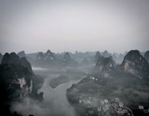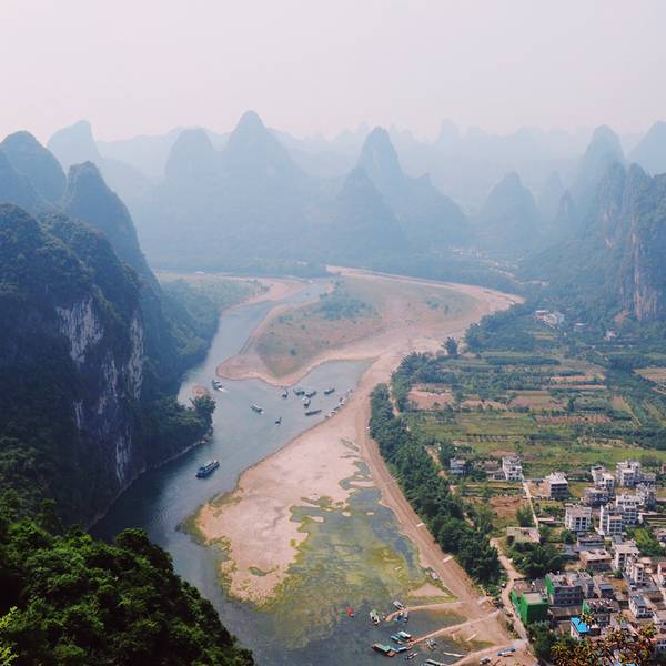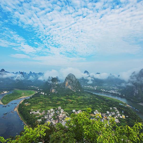 🌊漓江流经兴坪的时候,有一个U型的💫大转弯,从这个角度登高拍拍照,是一个👍绝佳机位!