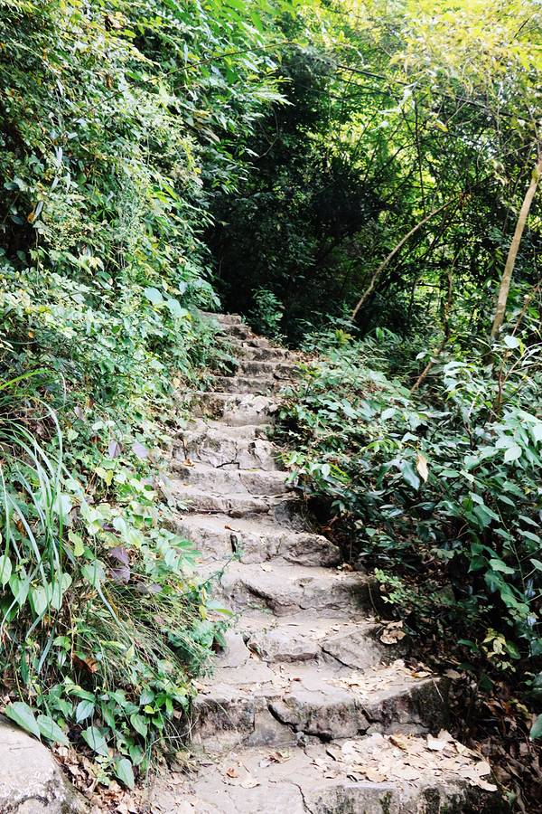 👣👣再往后基本是无心顾及边上的情况了,🙅♀️因为越到后面山上的台阶越不规则、越陡峭🧗♀️很明显可以看出这个山路应该是人为凿出来的感觉,然后台阶还比较小,就感觉蛮⚠️危险的,以至于我最后真的是“爬山”😹😹😹就是手脚并用的那种爬,为了安全🥺,要尽量压低自己的重心!