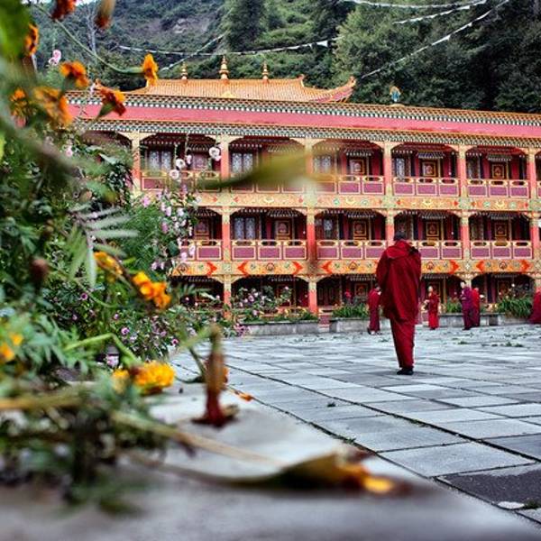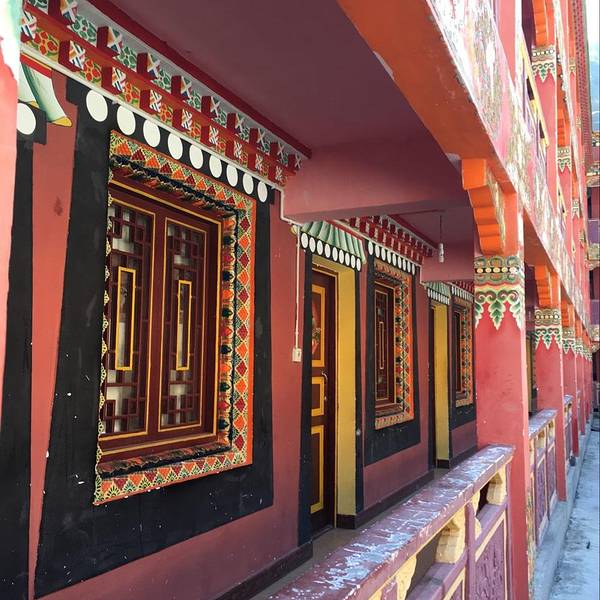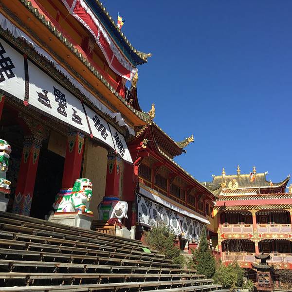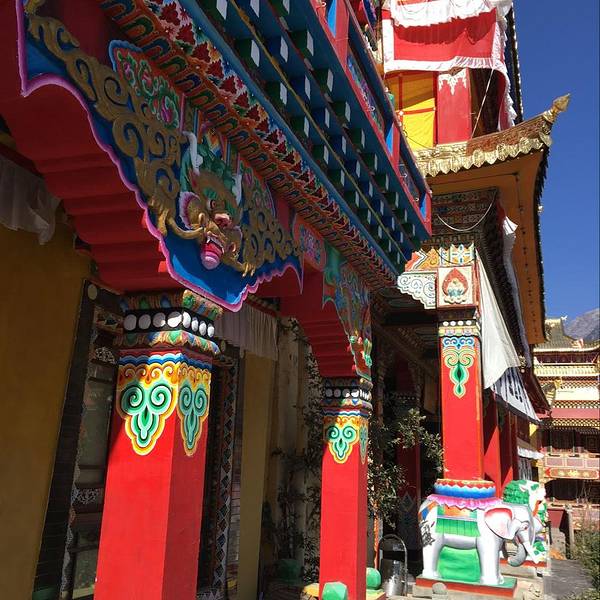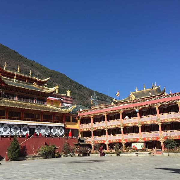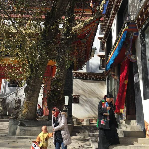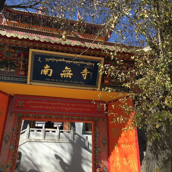 副殿中有几位信众在绕佛,竟然也是金刚诵,大为赞叹。为了保护古树,竟然有一棵树是从门楼穿过的沿着南无村的牌坊有一条上山路,路上遇到一位藏族大妈,热心的把我们带到寺庙。寺庙门口在修缮,崭新的门楼,金碧辉煌。为了保护古树,竟然有一棵树是从门楼穿过的。寺庙是四合院结构,雄伟,庄严,富丽。我们去...沿着南无村的牌坊有一条上山路,路上遇到一位藏族大妈,热心的把我们带到寺庙。寺庙门口在修缮,崭新的门楼,金碧辉煌。为了保护古树,竟然有一棵树是从门楼穿过的。寺庙是四合院结构,雄伟,庄严,富丽。我们去时,主殿中喇嘛们在诵经,声音穿透脑门,撞击心灵。副殿中有几位信众在绕佛,竟然也是金刚诵,大为赞叹 展开