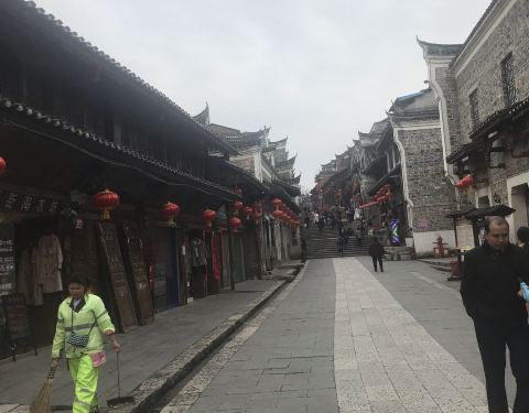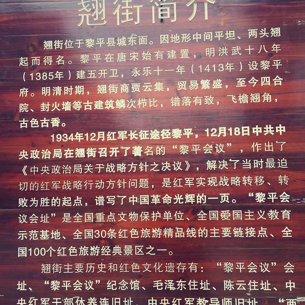 昨天肇兴侗寨逛的差不多了,今天去省城转转! 在客栈吃完早餐,出发去侗寨的汽车站坐车去翘街看看! 到车站去找到黎平的车,票价20元一人,车程约40分钟,到达黎平客运站,步行10分钟即可到达翘街! 一条古色古香的街道,大街上充满红色革命的影子。 游览时间约1小时,景点比较单一,适合拍个照什么的,特别之处不多。有时间的,且自驾游的可以游览一下天生桥景区及隆里古镇,可能更好玩一些!但距离黎平县有一定距离,些交通不便,我们并没有前往!