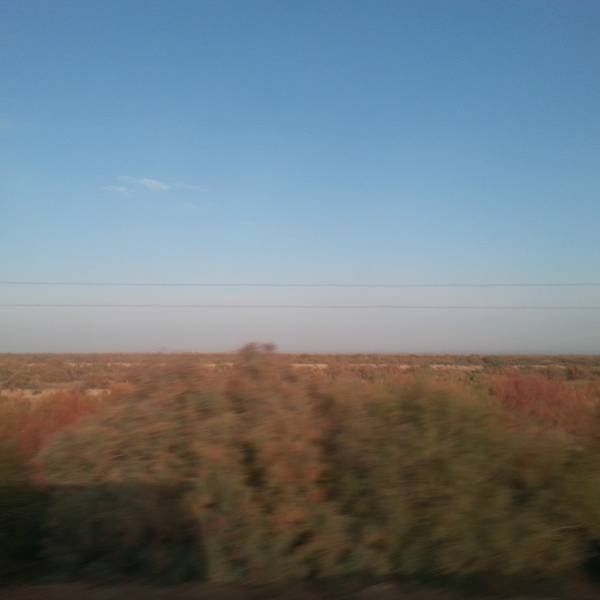 从敦煌到柳园,4-5个小时车程,路上那叫一个荒凉啊,一棵树都没有,戈壁滩上都是叫什么骆驼刺的植物,也不是绿色,黄黄的一小片一小片,