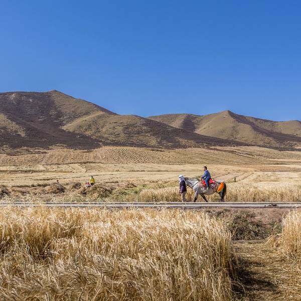 出了阿柔大寺,在去往张掖的路上进过一片麦田。秋天已过大半,小麦已经成熟,割麦人在这里劳作,从草原到麦田,从阔绿到金黄。
