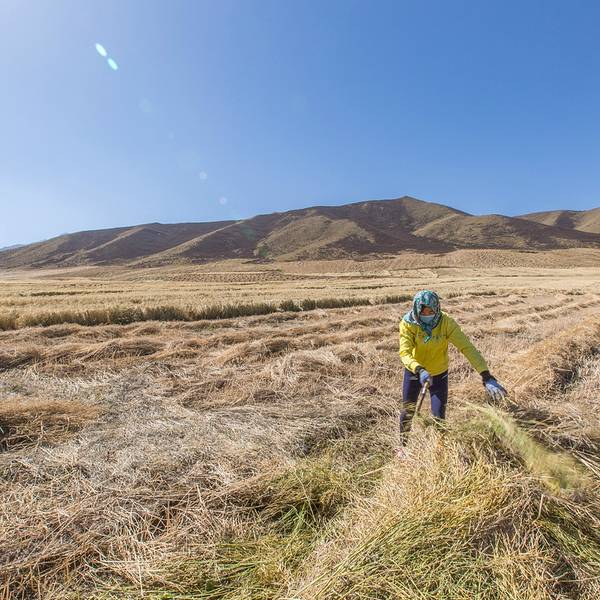 - 秋天已过大半,小麦已经成熟,割麦人在这里劳作,从草原到麦田,从阔绿到金黄
