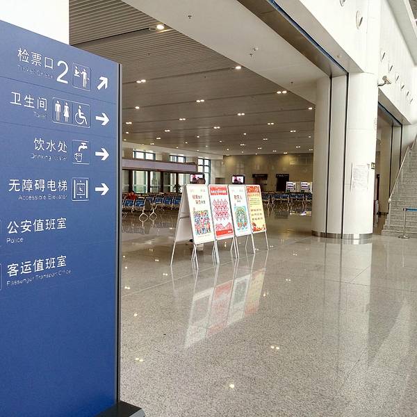 【优点】 车站装修前卫、宽敞不显拥挤,整体站内环境卫生不错!车站外观。站内简洁干净。车次显示大屏
