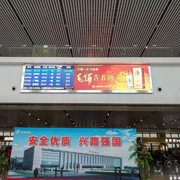 【途径感受】 首次来到惠州,之前差旅也有经过惠州这座城市,但并未做停留,惠州南站主要是高铁和动车转接车站,客流量与广州这些大站相比,倒也不算太多,车站占地面积很大,在惠州这样城市来说目前完全够用,日发车次近100次之多,我去到的时候临近元旦,但完全不显拥挤,车站内安检人员和其他工作人员都很认真负责,车次发车有大屏液晶显示屏显示标识清楚,大喇叭提示音清晰只要在车站内都可听到。 车站售票大厅与候车厅单独隔离,售票大厅配有几台网络售票取票自动机器,买票后步入候车大厅非常近。 乘车验票口只有一个通道,但完全够用。验票后去站台候车步行也近,小站台的优势就是这么好! 【交通路线】 乘车公交有很多车次均可直达,如惠州大亚湾209路,316路,336路,168B线,惠州K3等,看各人的出发地点,打车也很方便,有专门的的士停车专用道。自驾也有免费短停车位可提供。 【车站餐饮与购物】 过了安检后,站内有餐饮地点和日常用品特产等购物点,只是消费比大众超市稍贵,如果赶时间的可到这里购买。 【优点】 车站装修前卫、宽敞不显拥挤,整体站内环境卫生不错!