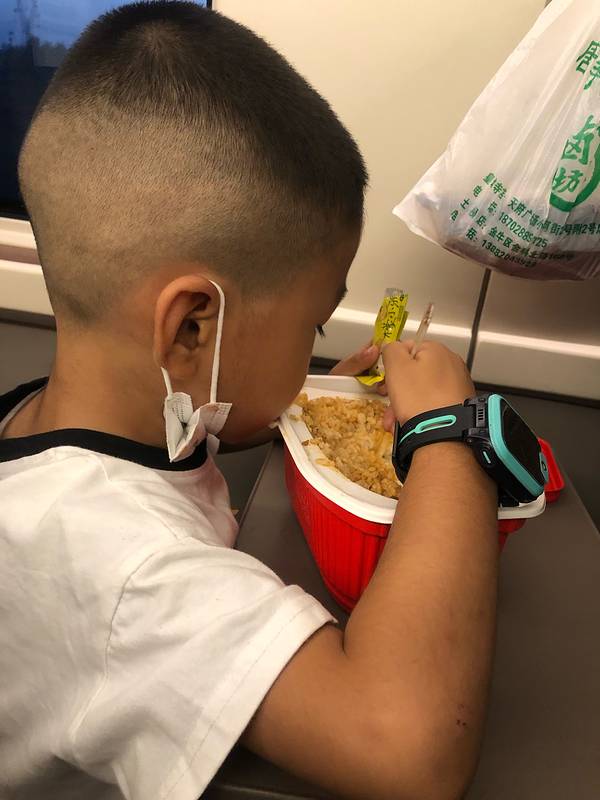 路途的风景很漂亮小朋友很乖,自己吃饭