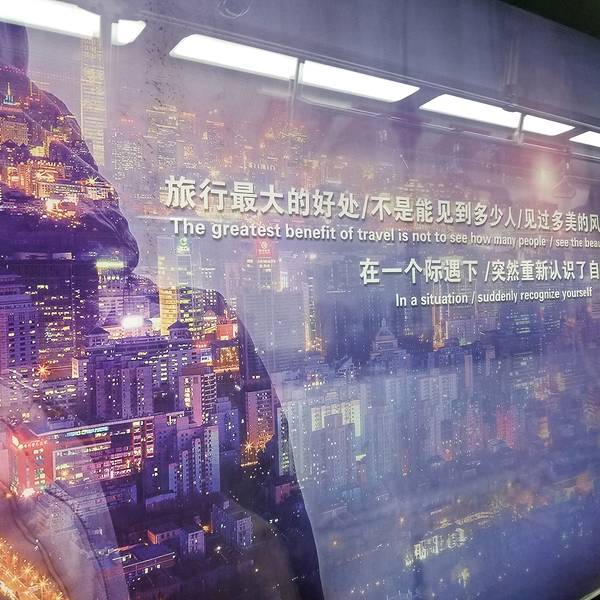 - 地铁站的广告牌写的真好。一次说走就走的旅行,天天刷屏,刷到票就去浪了,还是倒车票🥂🥂