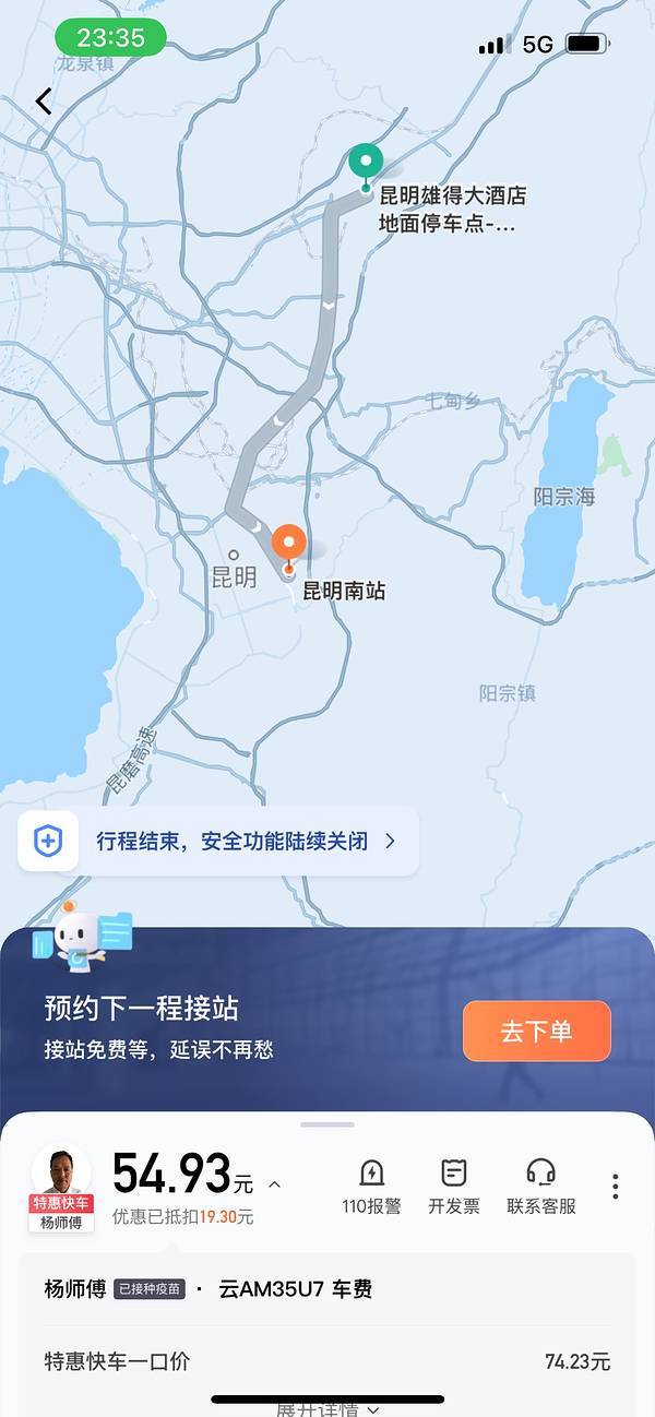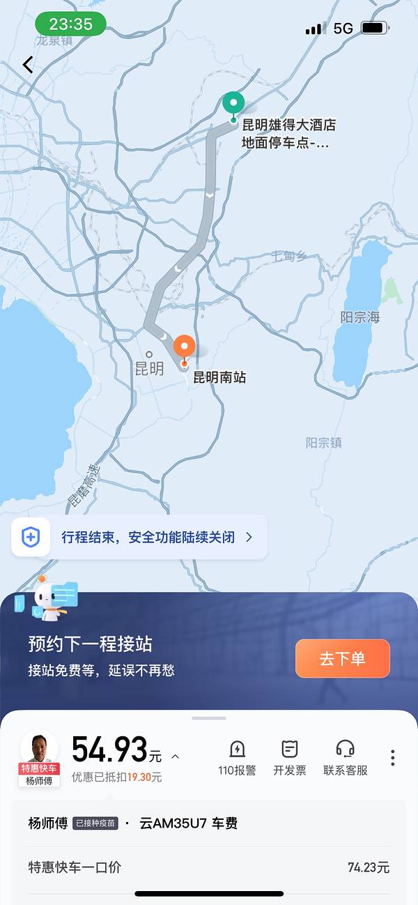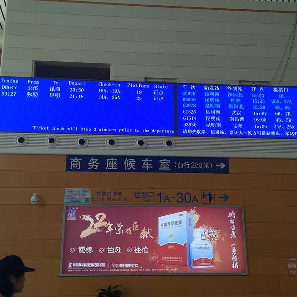 22:29分就到昆明南站了,由于昆明南站和昆明站是2个地方,相距30对公里(我坐的是公交7元要1个小时多,建议打的前往约100元),所以定了最后一班昆明站到大理的火车没赶上(因为这样走就省了一晚的住宿和不必要的赶路时间)