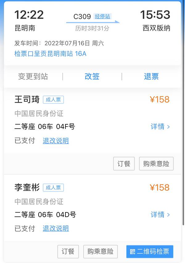 100元坐上了到西双版纳的高铁,3个多小时到了西双版纳后发现人是真的多,打车打了大概半个多小时吧,快车排队70多号,最后加价也是30多分才坐上专车来到了酒店