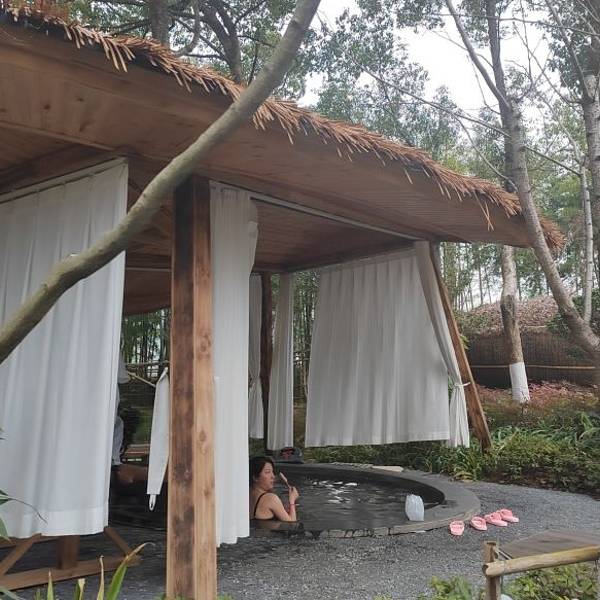 酒店内的温泉,感觉还是不错的,服务态度也很好,有提供浴袍和浴巾,温泉都是在室外的,隐蔽性很好,环境也不错,就是人多的时候,柜子可能不够用,可以在酒店房间换好泳衣穿浴袍在去泡温泉,这样会更省力些!里...酒店内的温泉,感觉还是不错的,服务态度也很好,有提供浴袍和浴巾,温泉都是在室外的,隐蔽性很好,环境也不错,就是人多的时候,柜子可能不够用,可以在酒店房间换好泳衣穿浴袍在去泡温泉,这样会更省力些!里面还有汗蒸房,有多人和单间的,还是不错的!大家去安吉开元嘉乐比酒店住的话,一定要去,不要错过哦!