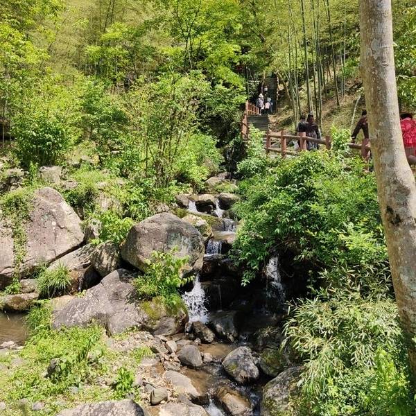 峰我没下水,就在周边逛风景拍照片,周围森林竹林都没怎么开发,山岚和溪水很美。同事上来说漂流体验还不错,打水仗玩的很开心。