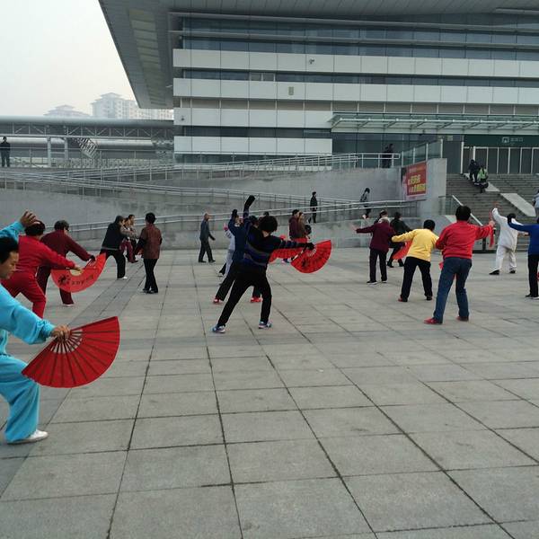 火车站外面的广场上有许多人一起晨练、舞扇什么的……喜欢这样安安静静、平凡却也美好的生活。再见了