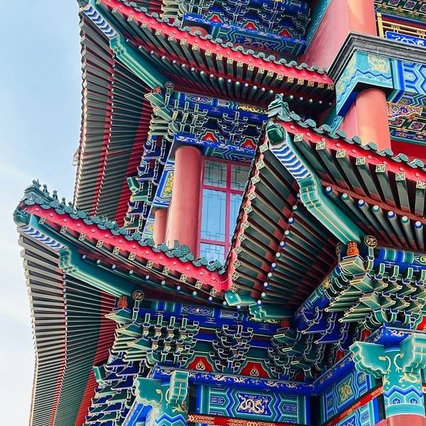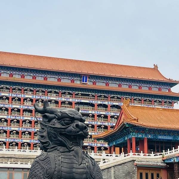 天下第一城,位于河北-廊坊-香河,离北京似乎就相距一条街道,在北京郎家园搭乘000路公交车可以直达,938路公交天下第一城也有一站,下车就能看到。天下第一城外仿明清时期北京都城的城垣风貌,皇家风范也有市井气息,占地面积200公顷。曾经节假日在这里举行过仿古开城仪式,气势恢宏,如今走进来到处十分安静,有很多家庭来游览,也有居民来散步的,还有漂亮小姐姐拍网红照片的。的确夏秋交界时节,云淡风轻,湖泊里荷花盛开,景致妖娆,红墙灰瓦,古典大气,古装剧照特别应景。遗憾的是,几年前香火很旺的大安寺似乎关了,很多大殿也上了锁,有个别地方蚊蝇很多,希望宽阔又富有文化的景点能更好的运维和开放,城中曾经物美价廉的餐厅也关了,很可惜。本次在美团买的门票,每张门票三十六元,游览了两小时,登上了城楼 可以看到巨型的金黄色巨型凤凰还可以俯瞰到麒麟的塑像,惟妙惟肖。