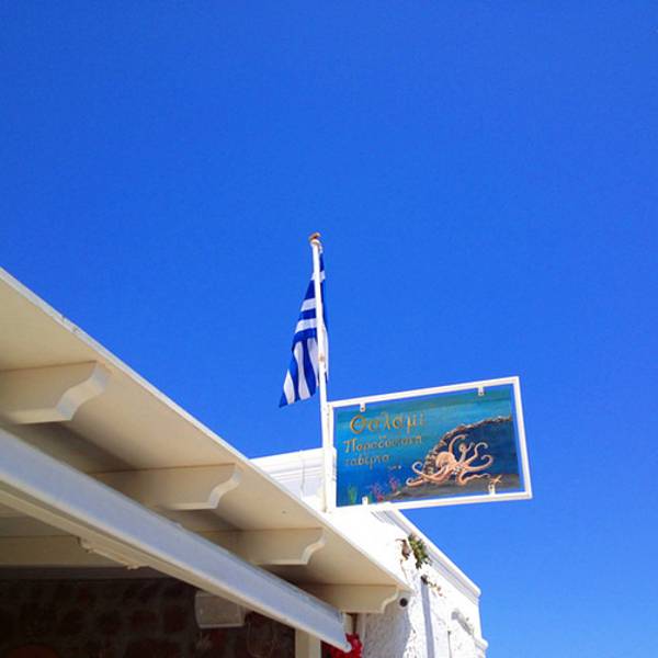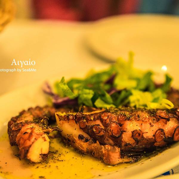 - 晚餐在伊亚小镇最出名的八爪鱼餐厅就餐。岛上最出名的小吃,用茄子做的饼。招牌当然就是这可爱的八爪鱼