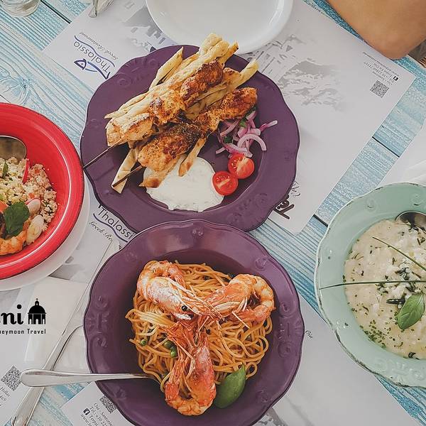 说完住的再来说吃的吧~在伊亚我们两天都是在一家叫章鱼餐厅Thalami吃的,环境不错,性价比也不错~~伊亚总体比费拉要贵些,但是我们吃下来每顿也是30欧出头~