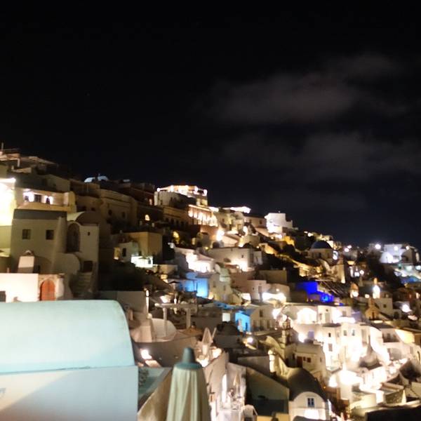 这一顿我们一共花了73欧,吃得超级撑 鱿鱼和希腊色拉 还有很出名的茄盒 也好吃 不过和前面两个比 那...夜晚oia是另一种美!