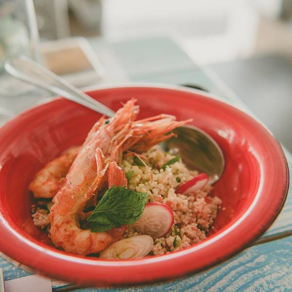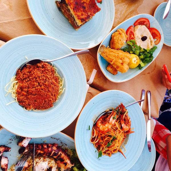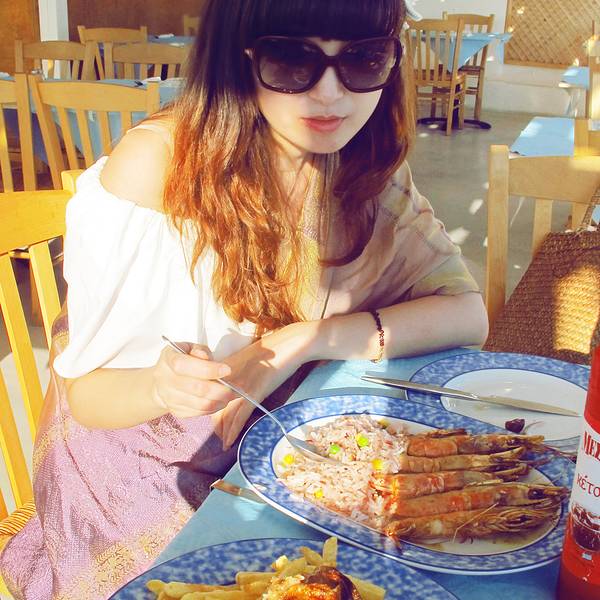 跟着网上收藏的一家叫Thalami的店,沿路寻找无果,佳哥顺手指了家说要不就这儿吧,我一看,呀这不就是我正要找的么,果然亲老公,默契值满分 这家店的东西还不错,价格也合理,每餐都无虾不欢的某人