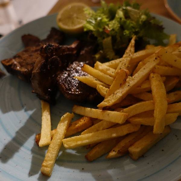 抓住最后一天的机会点了章鱼,一般般啦,不如鱿鱼~~~还是那句话,自带烤肉酱啊自带烤肉酱!要是有烤肉酱那就单说了。老公继续固执地点猪排,还是稍微有点硬有点老。饭后甜点柠檬蛋糕,敢再甜点吗?!爱吃甜的我都受不了,看来在中国人里算爱吃甜的,到了国外,就什么都不算了这一餐53欧,是最贵的一餐,因为有章鱼,而且他家守着黄金位置价格本身就比较坑。还有一个不好的体验,服务员拿账单来的时候,特意说了账单上没含小费,是暗示我们给小费吗?在希腊这么多天都没给过小费(希腊也不是小费国家)