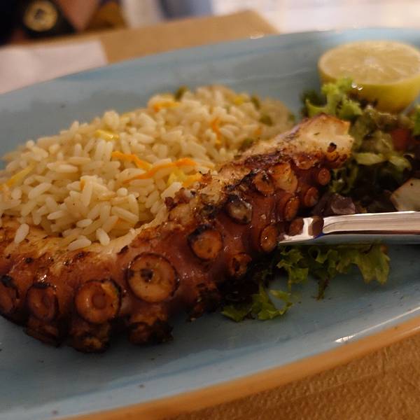 看完日落,去吃了章鱼餐厅~ 很红的章鱼餐厅,但我只给三颗星。还是那句话,自带烤肉酱啊自带烤肉酱