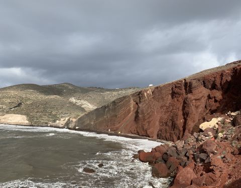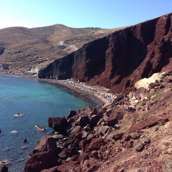 实用 火山给这个小小的海岛烙上了独特的色彩,大自然是多么的奇妙。这大一座红色的山出现在眼前,还是非常震撼的由于火山的喷发,不同的矿物质在不同的温度下形成不同的颜色,于是有了圣岛上不同颜色的沙滩-黑沙滩,红沙滩,白沙滩。火山给这个小小的海岛烙上了独特的色彩,大自然是多么的奇妙。红沙滩是由于这海滩的细砂与山...由于火山的喷发,不同的矿物质在不同的温度下形成不同的颜色,于是有了圣岛上不同颜色的沙滩-黑沙滩,红沙滩,白沙滩。火山给这个小小的海岛烙上了独特的色彩,大自然是多么的奇妙。红沙滩是由于这海滩的细砂与山崖呈现火红的色泽,因此有了红海滩的名称,红色是由于火山石含大量的铁矿,经过经年日久的氧化形成的颜色。这大一座红色的山出现在眼前,还是非常震撼的。由于我们是5月份去的,还不算旺季,天气也没有那么热,不太适合下水。所以来红沙滩的人不是很多。小贴士:自己去的话,路非常难找,绕来绕去的,我们是和几个团友包车的,50欧一人,包一天,可以去好多地方。如果是搭乘公车的,一定要看好时刻表,岛上的公车时间间隔还挺长的。红海滩基本不算海滩,周围都是岩石,因此并不适合在这里玩水,观赏性更强一些哦。 展开