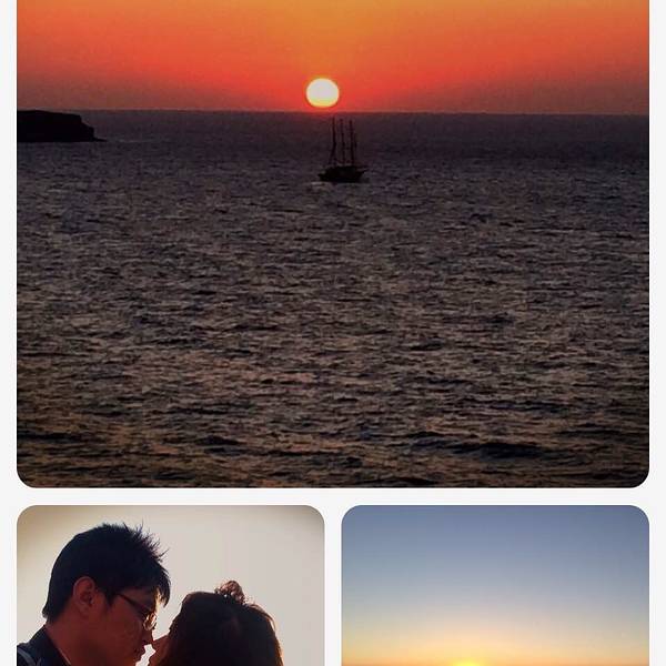号称世界上最美的落日在Oia~我们没有去观景台去人挤人,听民宿老板娘的建议开车到了港湾,果真…好美!