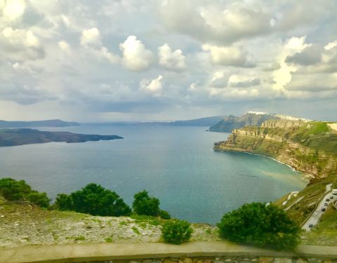 岛上各个主要景点包括机场和港口都有公交车抵达,每半小时至一小时一班,票价有1.6,1.8和2.2欧元三个档次。时刻表和具体价格可以登录http://ktel-santorini.gr/ktel/index.php/en/查询。不用提前买票,上车会有售票员找你买票,如果不确定在哪里下,告诉售票员地址,让售票员快到的时候提醒你即可。 由于岛上基本都是陡峭的山路,加上炎热的天气,许多游客都会选择租车代步。在岛上租车需要国际驾照,如果没有国际驾照,多找几家或者会有机会,但如果发生意外,保险赔偿会是个麻烦的问题,而且最近岛上也有警察开始查驾照,所以建议没有国际驾照不要租车。租车价格旺季在50至100欧一天不等,油费另算,一般环岛开一天的油费在10至20欧左右。需要注意的是,岛上没有红绿灯,而且由于只有几条大路,所以大部分路都没有路名,有问题可以问问附近的居民。