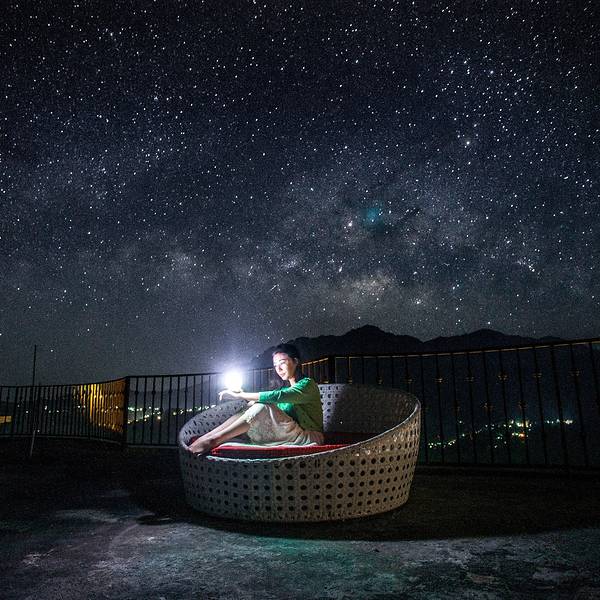 晚上,推开窗户,由于元阳在山顶,离天空更近,而且周围完全无光污染,漫天的繁星,清晰可数。我和周老师提议,我们去酒店楼顶拍星空人像。大清早就起床。远山与天交接处,才刚泛白,大地氤氲浓雾。元阳梯田,因巨大的海拔高差,山谷处的水汽随着热气升腾,受到高山的冷空气压迫,形成了丰富的降雨与雾气。