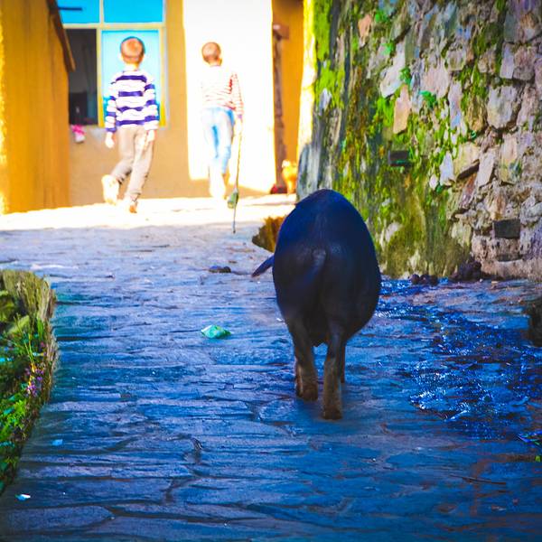 金骆驼 比较好玩的一点,这里的猪竟然都是散养,一路看到不少霸道的家伙气势汹汹地从我们身边路过,一点都不怕人罗姐带我们驱车前往坝达景区,也是当天最后一个景点。听从她的推荐,我们先到坝达观景台的下侧参观,看是否合适拍摄日落。坝达梯田的最大特点是落差大、线条分明,亲眼所见的确如此,相比前面几个,在这个季节里...罗姐带我们驱车前往坝达景区,也是当天最后一个景点。听从她的推荐,我们先到坝达观景台的下侧参观,看是否合适拍摄日落。坝达梯田的最大特点是落差大、线条分明,亲眼所见的确如此,相比前面几个,在这个季节里感觉坝达的梯田群确实最为壮观、气势恢宏。可惜的是,当天光线太强,浓烈的阳光让原有的色彩稍显单一,色调发蓝。这里跟坝达村相连而建,所以深处走走就是直接进了村子。比较好玩的一点,这里的猪竟然都是散养,一路看到不少霸道的家伙气势汹汹地从我们身边路过,一点都不怕人。爬山回到山腰一带,在罗姐的指引下正式进入坝达景区(需验票),简单对比后我们决定在2号观景台看日落,到达最里面位置时,发现已经有不少游客提前聚集于此,不少是摄影发烧友。随着太阳渐渐下降,余晖渐渐变得柔和,大山与梯田的色彩终于占据主动,眼前的世界一下子通透光亮起来。元阳的梯田是神奇的,每一次的日升日落,都能给人不同的感受。