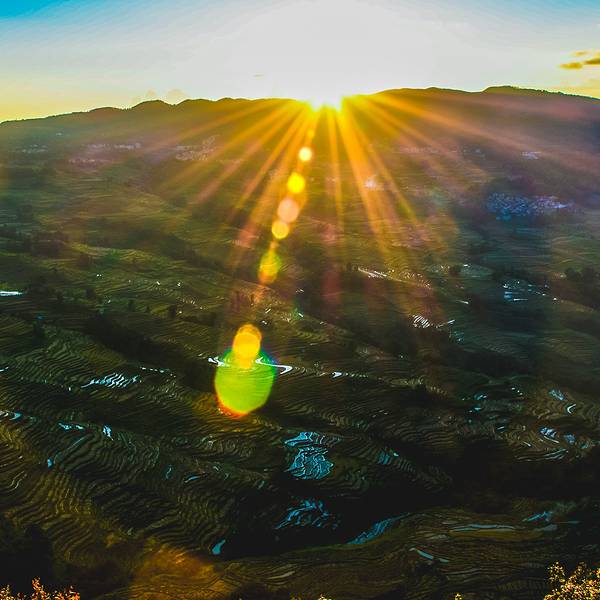 坝达景区包括箐口、全福庄、麻栗寨、主鲁等连片14000多亩的梯田。站在麻栗寨茶厂观梯田,近万亩的梯田宛如一片坡海,泛着粼粼波光,奔来眼底,景色十分壮观,每当下午四时后,白茫茫的坡海随着夕阳西下,逐渐变成粉红色、红色,再转变成粉红色、白色,是观赏和拍摄梯田随时光变化而变化的地方。坝达的日落景观令人震撼,是拍日落的最佳地点。 因为坝达梯田面东靠西,是一个落日景点,也就是说,它的最佳观赏时间是在每天傍晚,夕阳西下、满天红霞的时候,有摄影家称它是夕阳晚照。 展开