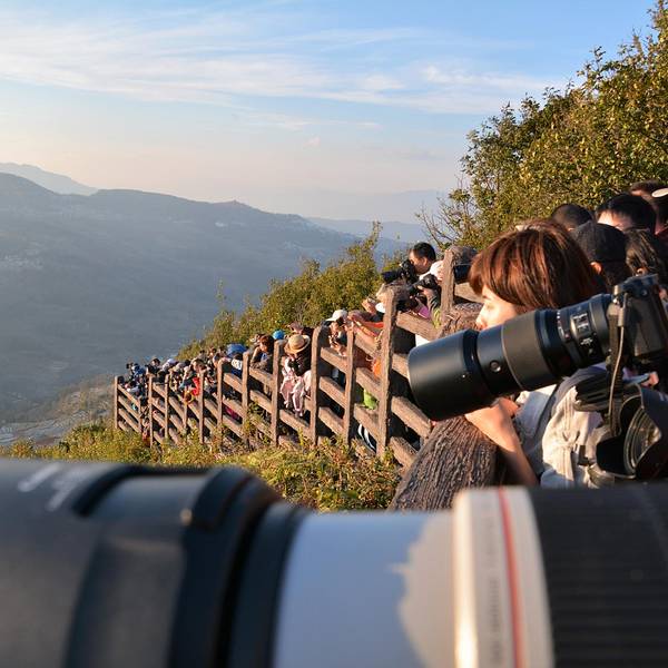 太阳在我们登上酒店观景平台后,迟疑而至。微熹之间,看见云雾如絮如水,自多依树的山坡上流入山坳间。多依树的观景台,正在云雾中天,许多人在等着拍摄日出。当太阳努力跳出云雾的束缚时,已在半空。人们失望至极,太阳兴灾乐祸,我显然向着太阳,有共谋恶作剧成功的快乐。 展开