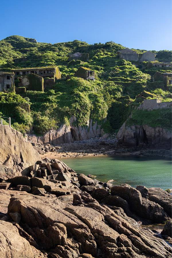- 16:30 在无人村码头乘船回到嵊山主街,感受海潮拍打岸边的声音。