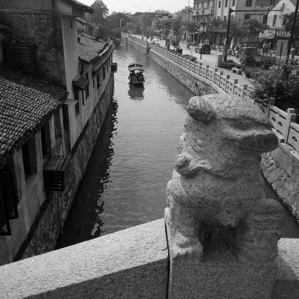 万元桥是南浔的古桥之一,很有历史,桥面上摆放有10对石狮子,看得出狮子年代久远,石狮子的头已经被过往的游人摸的油光发亮。
