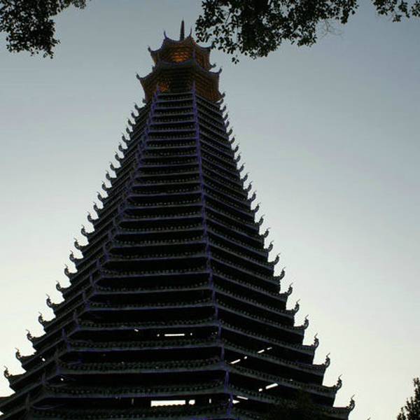 从江鼓楼,据称是中国最大的侗族鼓楼,全木结构,有几十米高,楼中的几根高至楼顶的大木柱,至少两个...