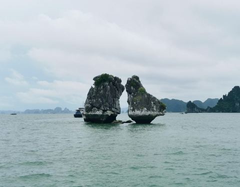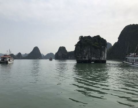 北越南这里,下龙湾是一个大家都想去的地方,因为风景和其他地方不太一样北越南这里,下龙湾是一个大家都想去的地方,因为风景和其他地方不太一样。。在海湾里面,有很多形状很特别的石头山,像桂林的山水画一样。。一般游客都是安排乘坐四五个小时的船,在水上面兜来兜去,给游客拍照...北越南这里,下龙湾是一个大家都想去的地方,因为风景和其他地方不太一样。。在海湾里面,有很多形状很特别的石头山,像桂林的山水画一样。。一般游客都是安排乘坐四五个小时的船,在水上面兜来兜去,给游客拍照。有船家开来旁边,售卖海鲜,中午在船上吃饭的时候可以加菜。水不是很清,看不到下面的东西,也没有人游泳。对于一个喜欢下水的人来说,水不是特别的漂亮,只是石头山的形状蛮特别的。 展开