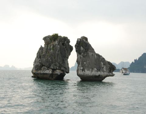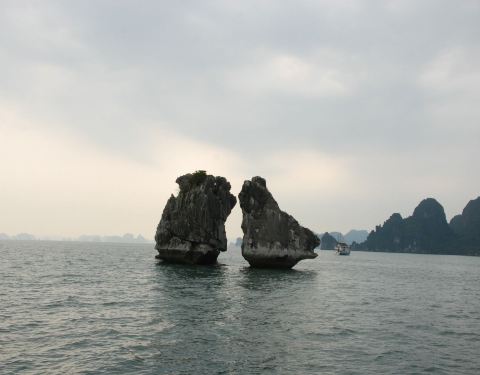 下龙湾斗鸡石是越南旅游的标志,据说相当于中国的马踏飞燕下龙湾斗鸡石是越南旅游的标志,据说相当于中国的马踏飞燕。不同的是一个是天然形成,一个是巧夺天工,同样为人所震惊。美哉赞哉!