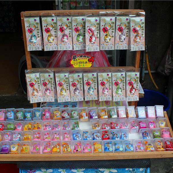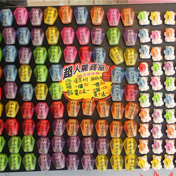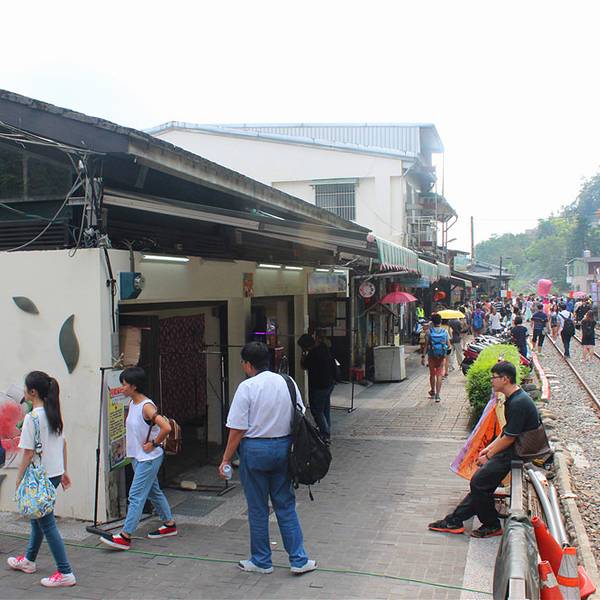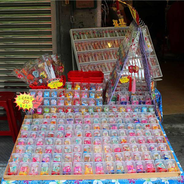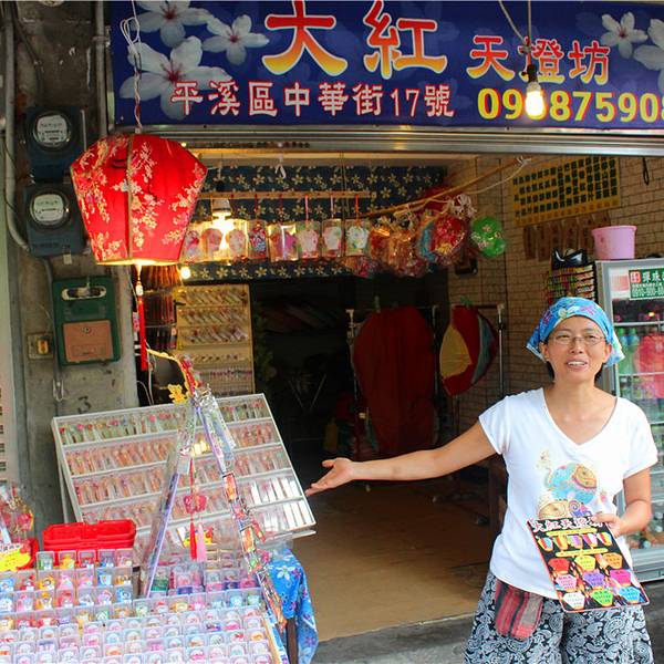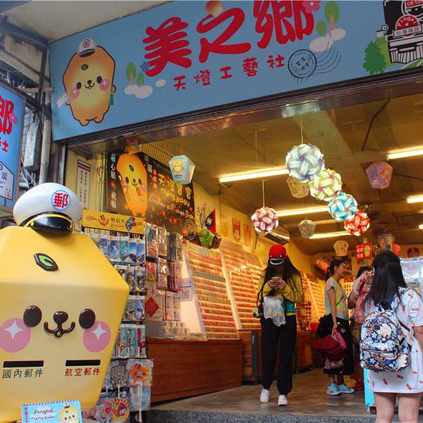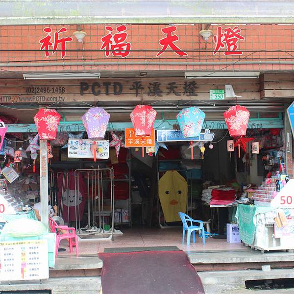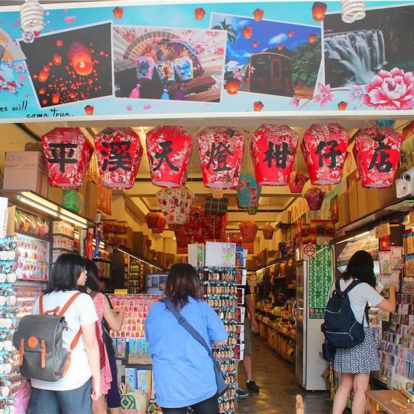 到了平溪站以后,下车的地方开始就是放天灯的地方,各种店!有好多人在店门口吆喝着让大家过去放天灯,中英日韩各种语言,天灯的店里还有各种小天灯纪念品,我买了一个夜明的天灯挂坠,非常漂亮。好像是25块新台币,普通的那种只有10块新台币而已。如果放天灯可以在这里放,之后可以走向箱子里,里面有很多小吃店,味道非常不错,有些还上过电视节目。