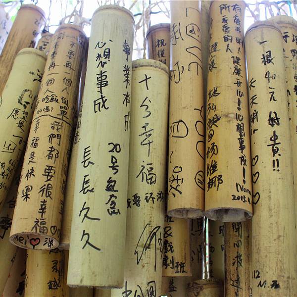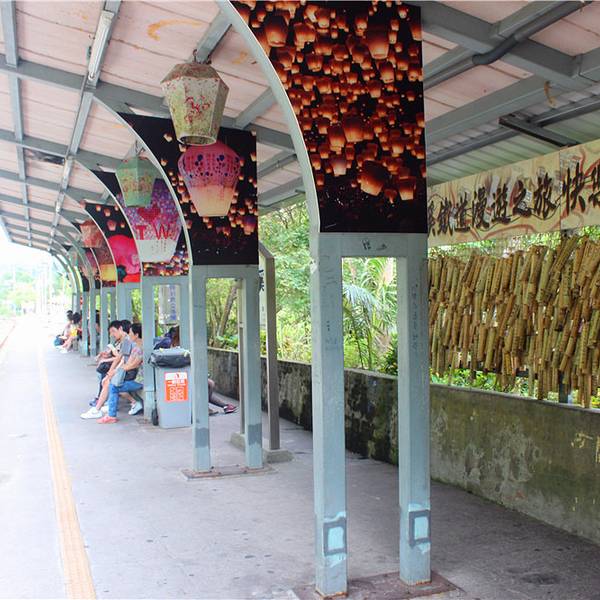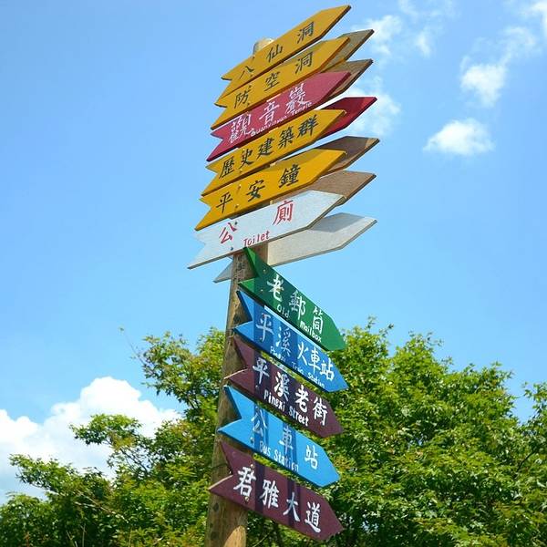 虽然这条线上有8个停靠的站点,但是热门站点只有4个,分别是候硐、十分、平溪和菁桐,其他站点的游玩和观赏性较低。玩法的话,可以按顺序一站一站玩,或者先坐到菁桐,再往回坐的路程一站一站游玩。我们为了避开人潮,选择了坐到最后一站菁桐玩回来,谁知道还是人潮拥挤,看来大家都是有做攻略哦。菁桐车站是台湾仅存的几座木造车站之一,带着日式风格的建筑与古色古香的怀旧风情,菁桐曾因此获选台湾百大历史景点,也曾为许多知名电影与戏剧、广告所取景的景点之一,比如那些年,就是在这里取景的,菁桐车站就是沈佳宜和柯景腾牵手走铁轨的地方。在菁桐老街上买一支许愿竹,写上祝福挂在风中吧!平溪站,以许愿筒和天灯著称,多到数不清的许愿筒挂满了小棚,密密麻麻的承载着许多愿望;而老街的铁路旁,更是许多人在画着自己的天灯,写下心愿,然后点燃它,再亲手升上天空。顺着指示牌,随意走走,彩色的指路牌让心情也明快了不少。热闹的老街上还有很多好吃的,除了感受满满的古早味,还可以让胃口大大的满足。在老街上逛逛各类小店,去天灯故事馆看看天灯的故事,再去吃个冰吧。十分车站是平溪铁路线上最大站,所有往返的火车均在此会车。横跨基隆河的静安吊桥,经历了60多年的风风雨雨,见证了十分小镇的没落与繁华。心里默默许下一个心愿: