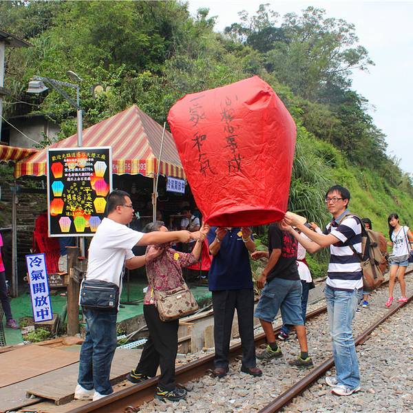 平溪老街和平溪车站是在一块的,来这里十个人里面,至少九个人都会早过来放天灯的,而且,我一直以为...平溪老街和平溪车站是在一块的,来这里十个人里面,至少九个人都会早过来放天灯的,而且,我一直以为只有晚上放天灯,没想到之里白天也是放的。