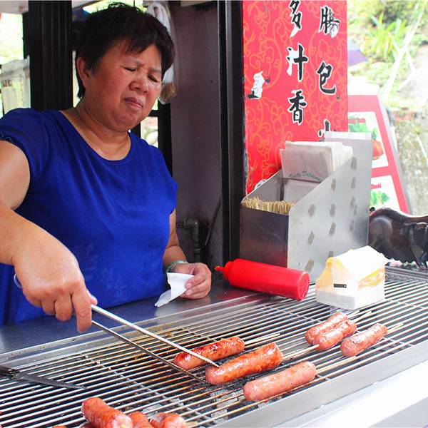 平溪有几个亮点一定要尝试的,放天灯不必说了,还有就是平溪站前的美食胡同直走有一家非常好吃的猪肉肠店,里面会夹各种口味,有芥末、芹菜、起司等等,非常好吃。还有旁边的豆花店,听台湾本地朋友说,这是台湾年轻人中非常有名的两家店,我试过以后真的觉得好吃。另外,这条街里还有一家制作日本和服的店,各种款式,是SUPER JUNIOR去体验拍摄过的,再往前走是平溪的邮局,邮局里有供大家拍照留念的设置,很有特色,这些都是本地人才会经常体验的,很少有游客直接走到箱子里面。下面的照片都是当天去的时候拍摄的,可以参考着,距离现在不到2个月,应该没啥变化。台北到瑞芳的区间车平溪小火车,人超级多!花生冰激淋,好吃~~~ 好喜欢这个花生粉。我喜欢吃这家的烤肠,比起对面那家!