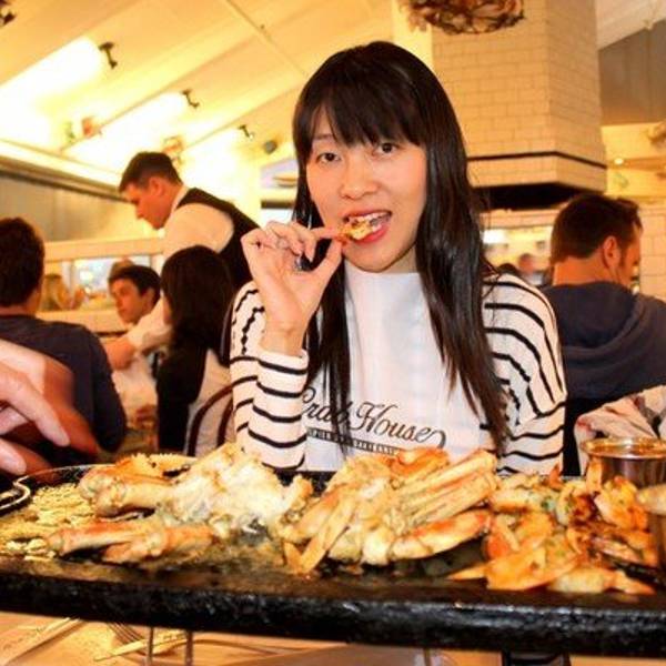 这就是大名鼎鼎的crab house 了,价格嘛,对于挣人民币花美元的朋友们来说,还是不便宜的,吃一个新鲜最好,对于我这种大胃王,要吃饱还是会把自己吃穷的。螃蟹我记得应该是50刀左右了吧,青口和虾是小份的快30刀...这就是大名鼎鼎的crab house 了,价格嘛,对于挣人民币花美元的朋友们来说,还是不便宜的,吃一个新鲜最好,对于我这种大胃王,要吃饱还是会把自己吃穷的。螃蟹我记得应该是50刀左右了吧,青口和虾是小份的快30刀?面是十几刀吧。。。。应该是这个价格。至于味道嘛,我只能说哪里的菜都不如中国菜好吃了。。。。。还行吧这个面还是不错的~蒜香味的吃完出去了还有好多好多人在排队。。。。。生意真是太好!