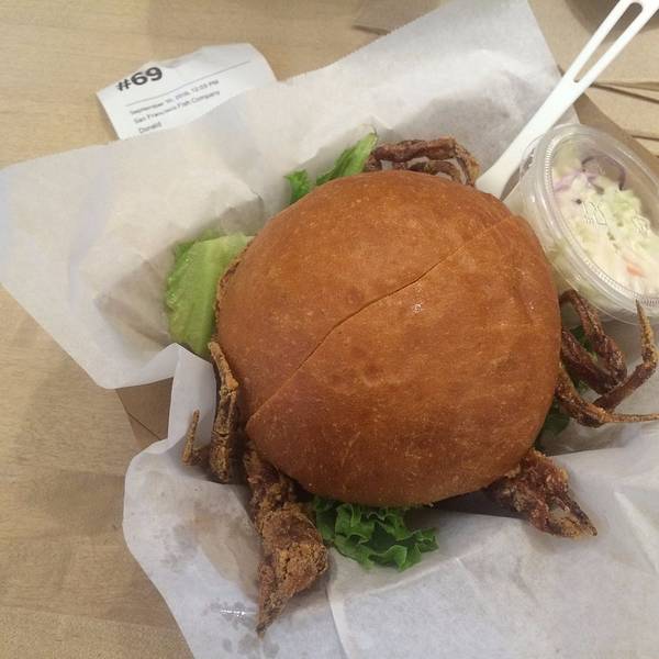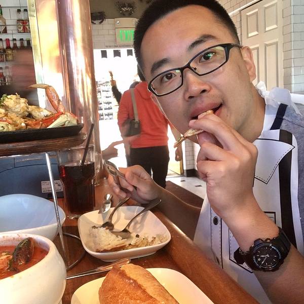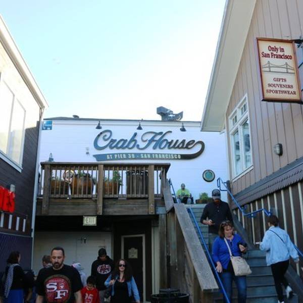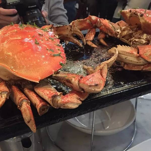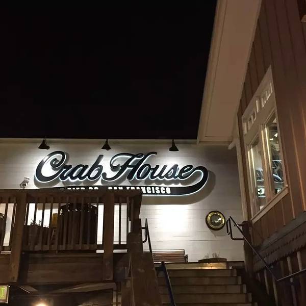打车到渔人码头,走到游艇停靠的地方,就能看到crab house的蓝白标志在二楼,出发前就在网上预定的位置,我们到达后直接报预定号就行,可惜当时已经没有靠窗的位置了。这家非常热门,12点的时候门口已经排上长长...打车到渔人码头,走到游艇停靠的地方,就能看到crab house的蓝白标志在二楼,出发前就在网上预定的位置,我们到达后直接报预定号就行,可惜当时已经没有靠窗的位置了。这家非常热门,12点的时候门口已经排上长长的队伍。餐厅里到处装饰着大螃蟹,各种颜色。餐桌都不大,我们3个人坐的4人桌,点了一个全蟹、一份面包海鲜汤,一份青口拼大虾,加上餐馆送的面包就几乎摆满整个桌子了。大螃蟹是真的很大,比我的脸都大,上来是是完好的一只,然后服务员会上前询问是否需要切开,螃蟹是先煎一下,然后搭配餐厅调制的酱汁,味道我感觉有些偏淡。海鲜面包汤海鲜料很足,浓稠的很好喝,就是面包有些硬,不如我在关岛吃的面包汤的面包好吃,要快点喝不然一会汤汁就被面包吸光了。铁板青口和大虾挺好吃,虽然青口不如新西兰的大和鲜美,但也还爽口,酱汁有些些酸。老美的牙口实在好,送的面包那个厚实那个硬啊,吃下去抵得上一碗饭了。总共消费了94刀,算上小费,15%大约要110了,总体来说口味和服务都还比较适宜,不存在歧视中国人或怠慢的事情,但正餐时间还是要提前预定比较合适,可以上crab house的网站预定,在预定的时间内到达就可以,无需任何费用或抵押。